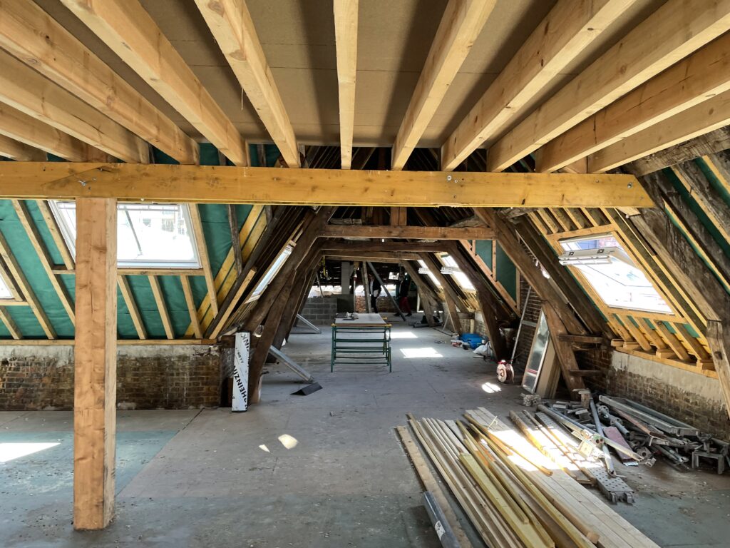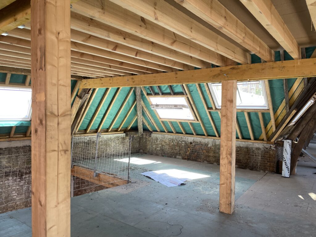• Pose de lucarnes, chevêtres, poutres apparentes
