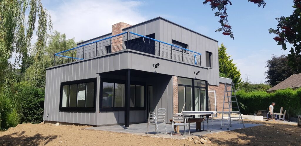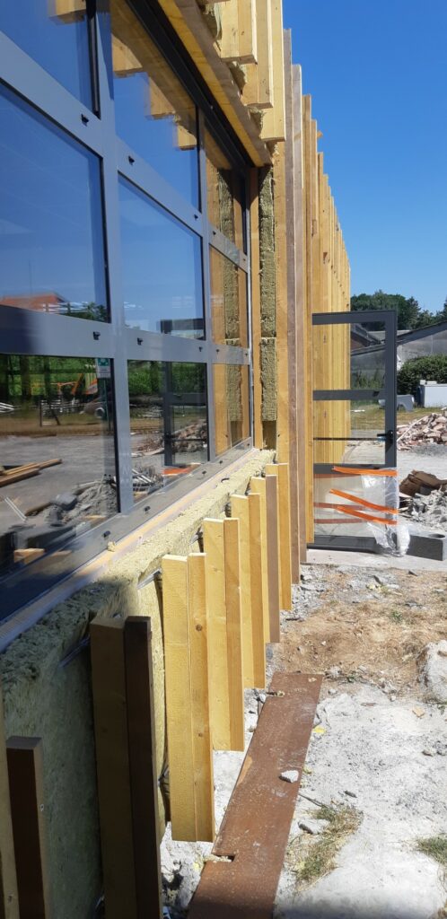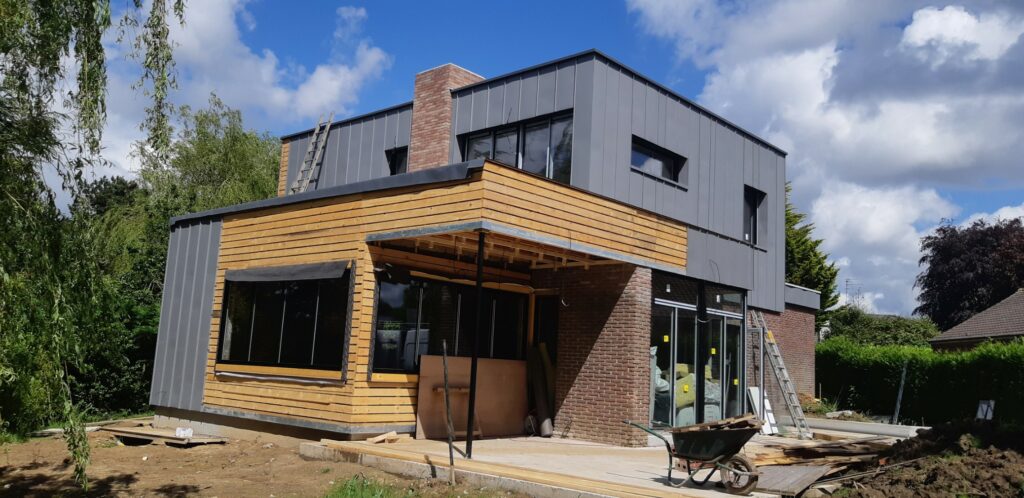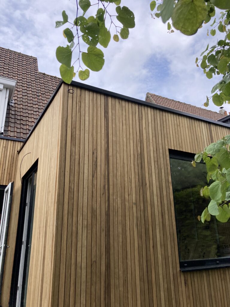 Ossature Bois – Charpente bois – Etanchéité – Bardage en Frake à claire voie